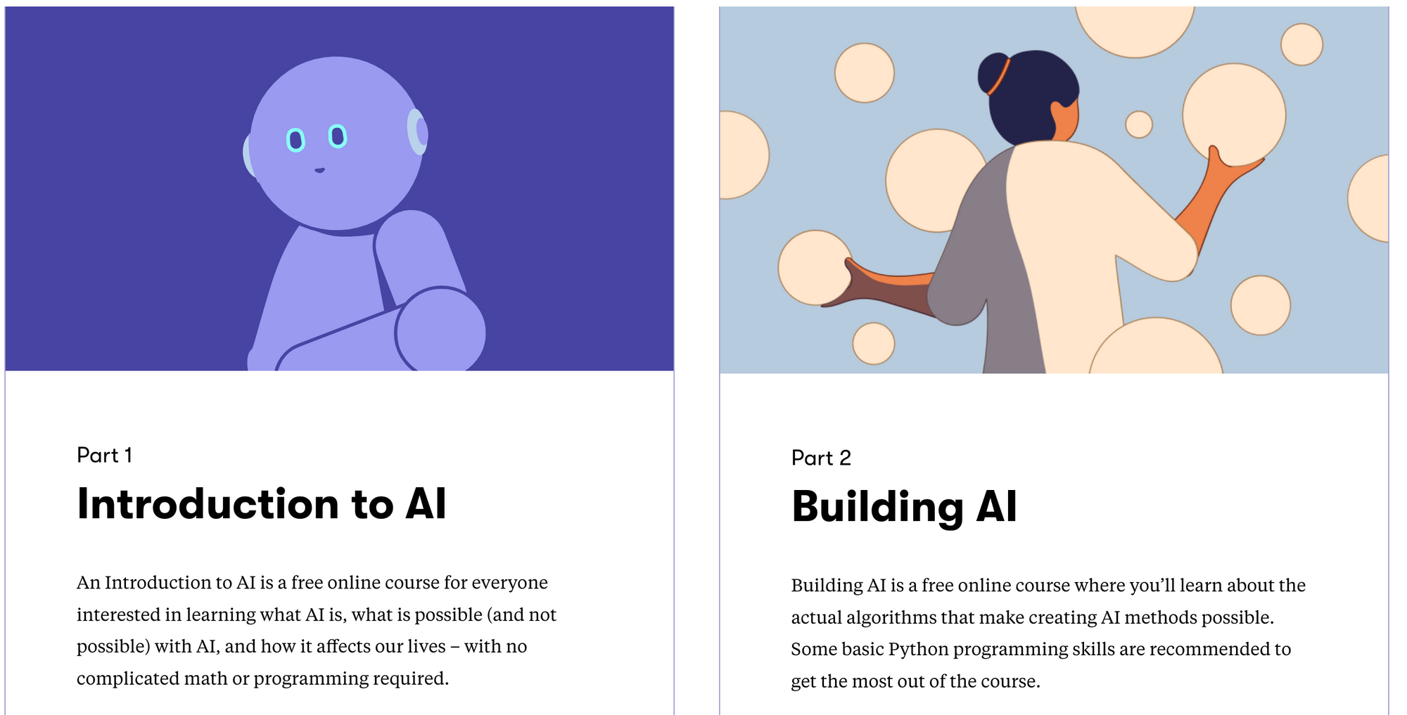 An excellent beginner series of AI courses from The University of Helsinki. I took a few screenshots so you can see the richness of the design and course outlines.