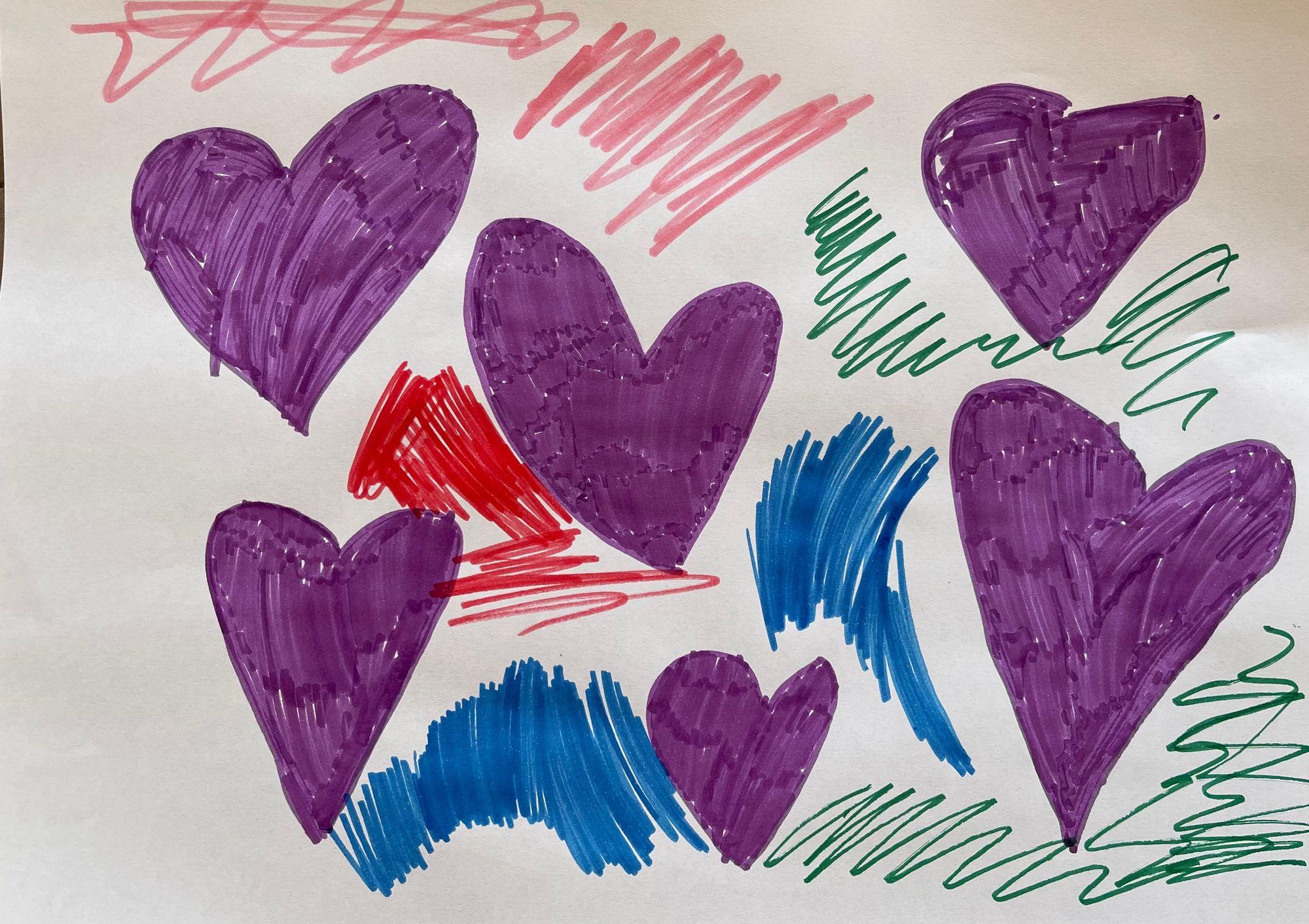 Here's a photo of my daughter's masterpiece - a marker drawing of purple hearts.